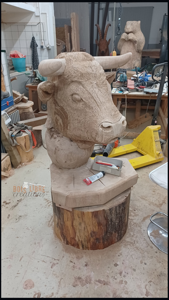 Cette réalisation a été commandée par l’entreprise Thematis SA pour représenter le Valais, canton invité d’honneur de cette 82e édition de l’OLMA Schweiz Mess. C’est une grande fierté de voir cette pièce exposée sur le stand du Val d’Hérens, au cœur d’un événement qui met en avant la richesse du terroir et le savoir-faire artisanal suisse. Tout au long de la foire, la sculpture sera visible sur le stand du Valais, et j’espère qu’elle saura transmettre au public toute la puissance symbolique et la beauté de cette race légendaire. “Sculpter le bois, c’est avant tout écouter la matière. Dans cette pièce, j’ai voulu exprimer la force tranquille du Valais et le lien profond entre nature et tradition.”